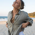 Biscuit brings a sophisticated vibe to the Boyfriend Shirt. Stye it with your favourite jewellery and our Marcus Linen Pant!