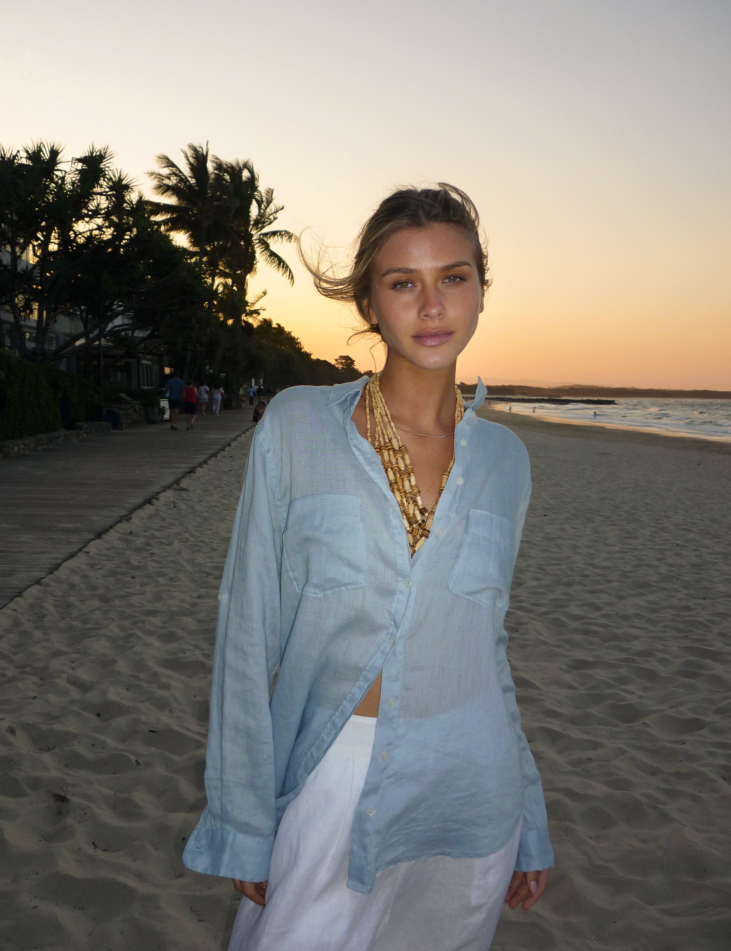 Rooftop Garden Stripe Boyfriend Linen Shirt