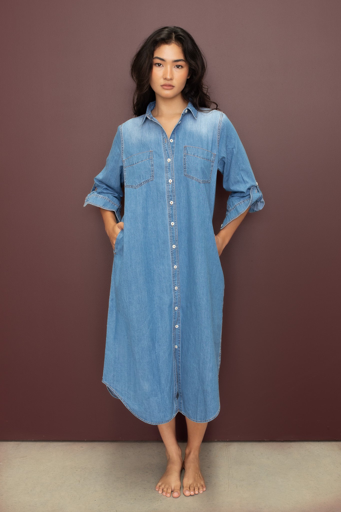 100% Cotton Denim Shirtdress.