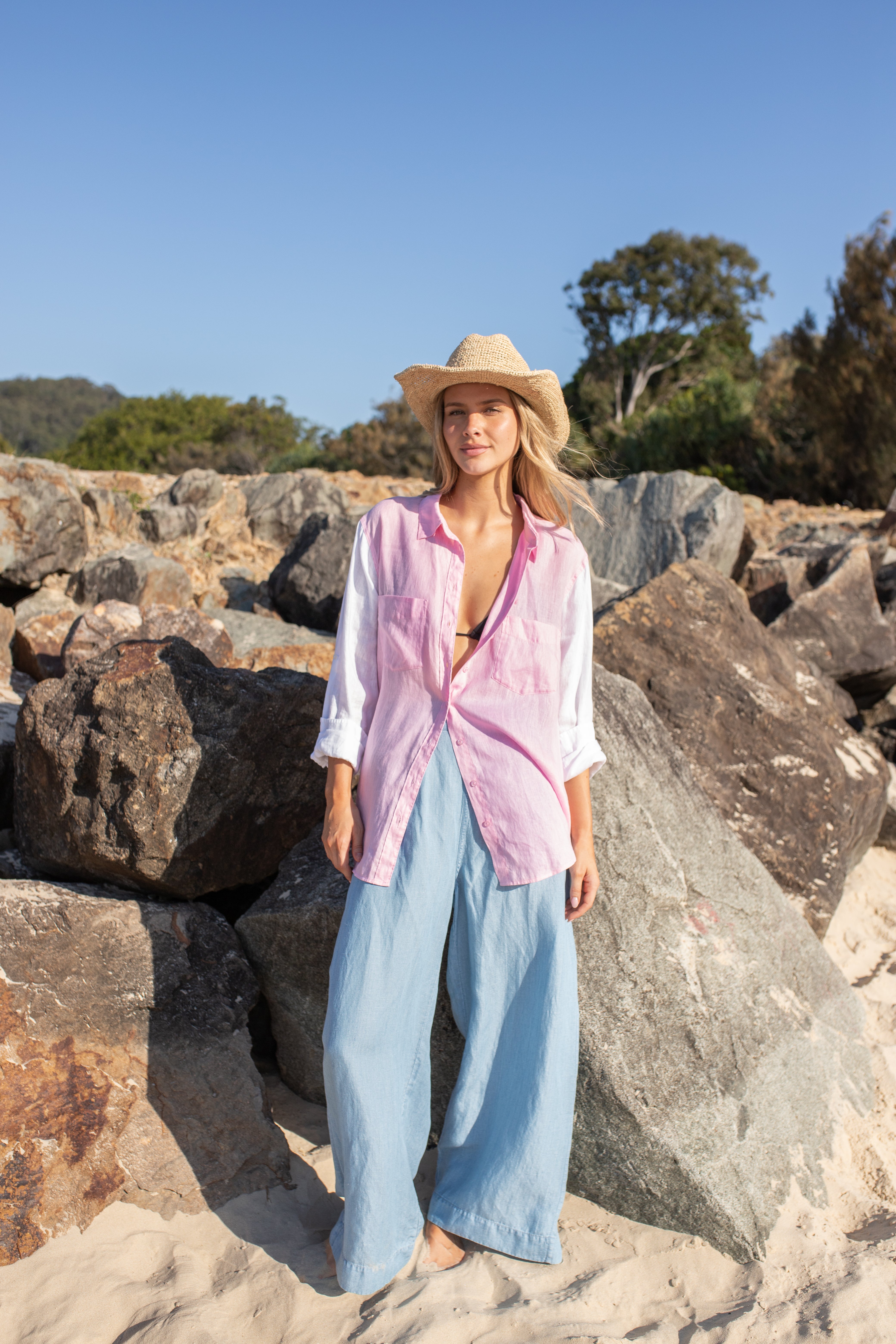 The perfect wide leg Linen pant to pair back with any of our Boyfriend Shirts!
