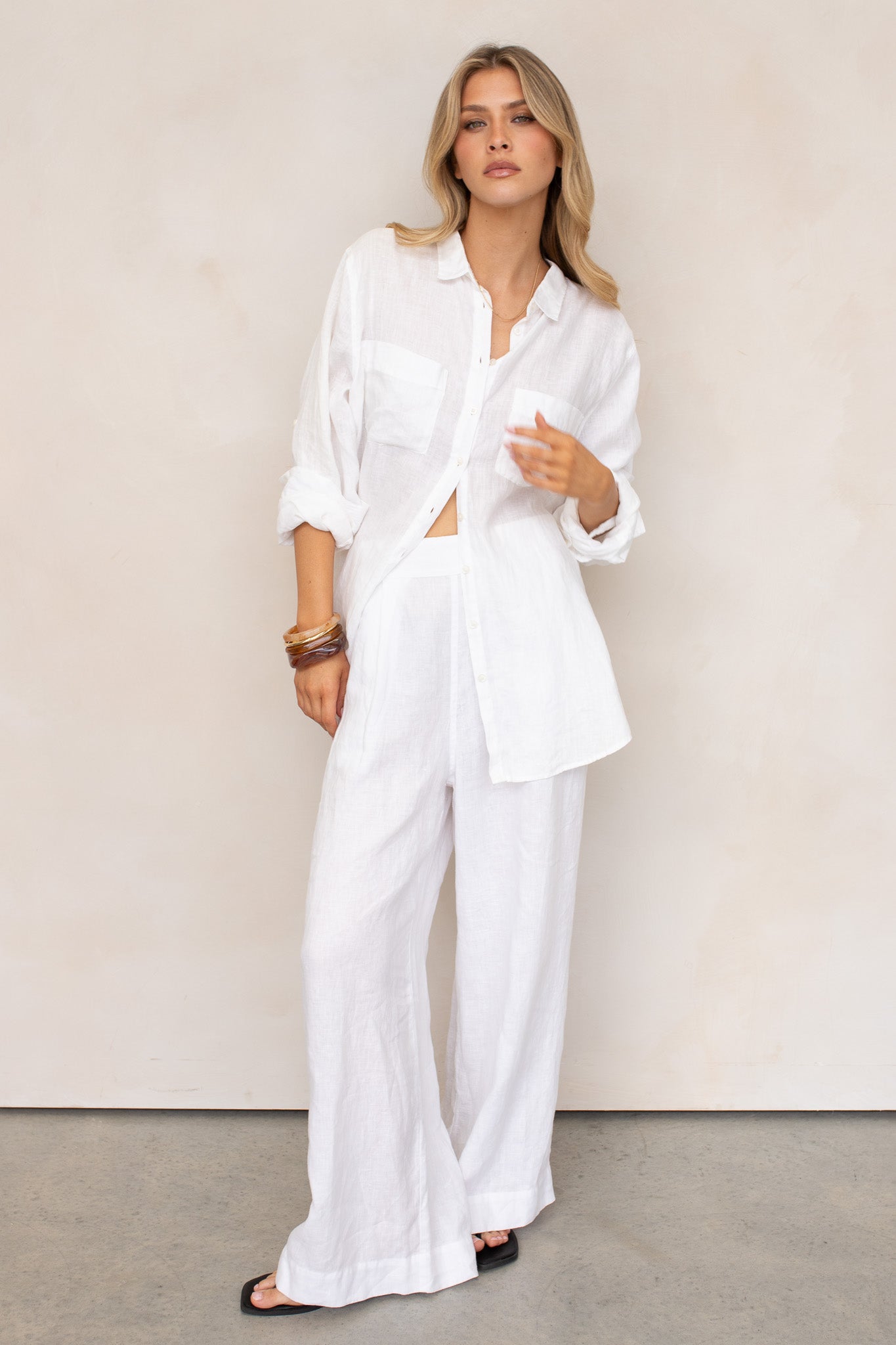The perfect wide leg Linen pant to pair back with any of our Boyfriend Shirts!