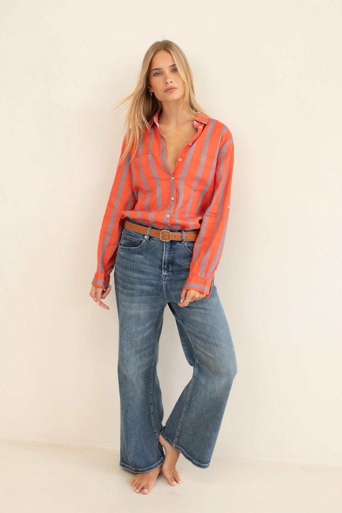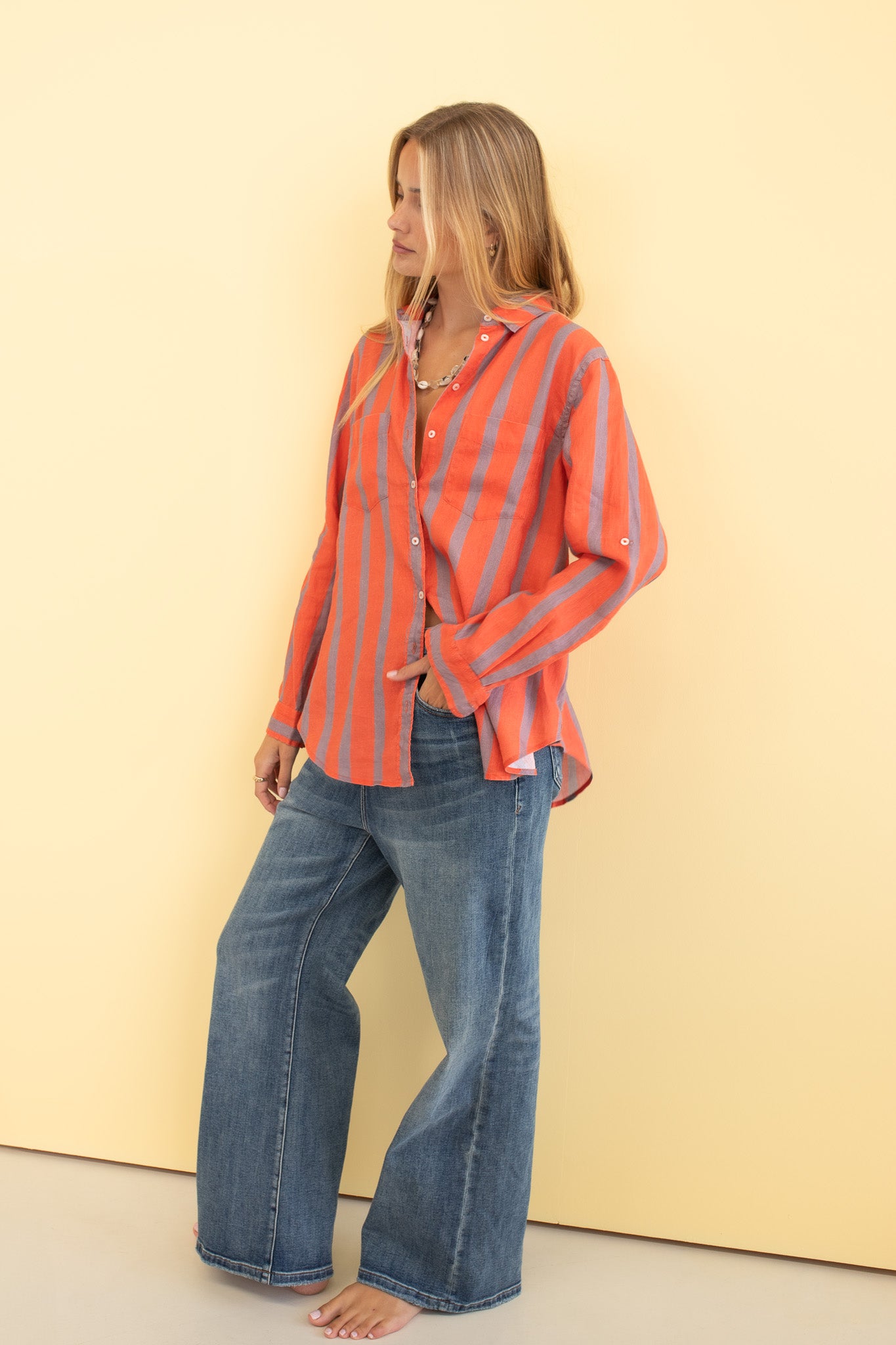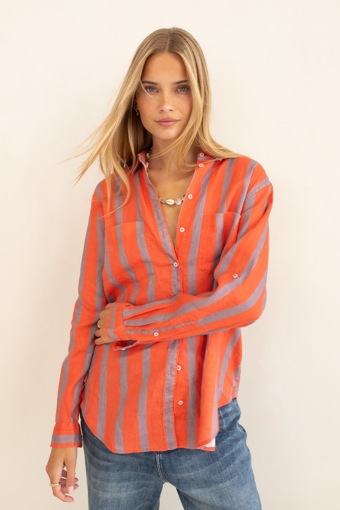 Off Duty Stripe Boyfriend Linen Shirt