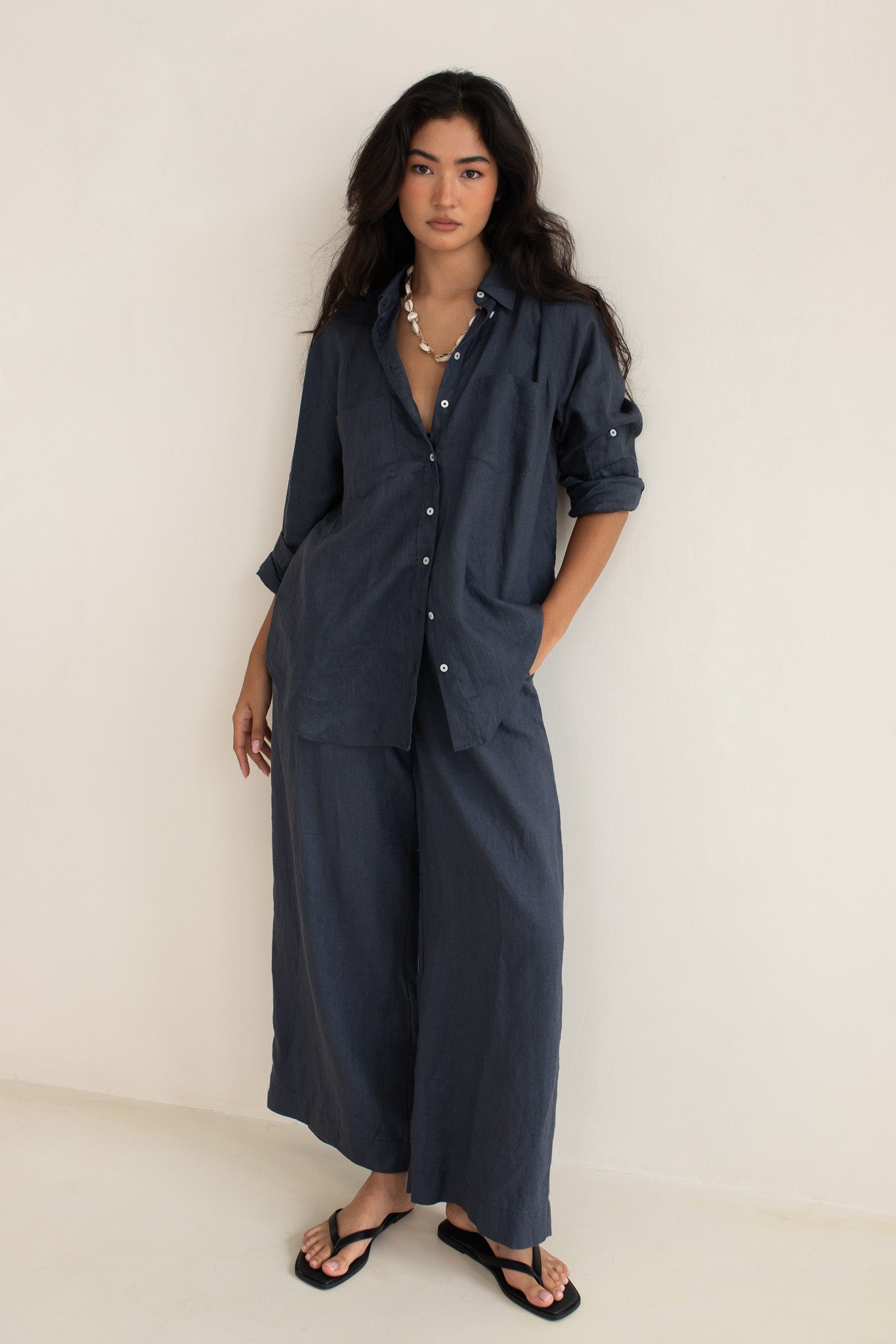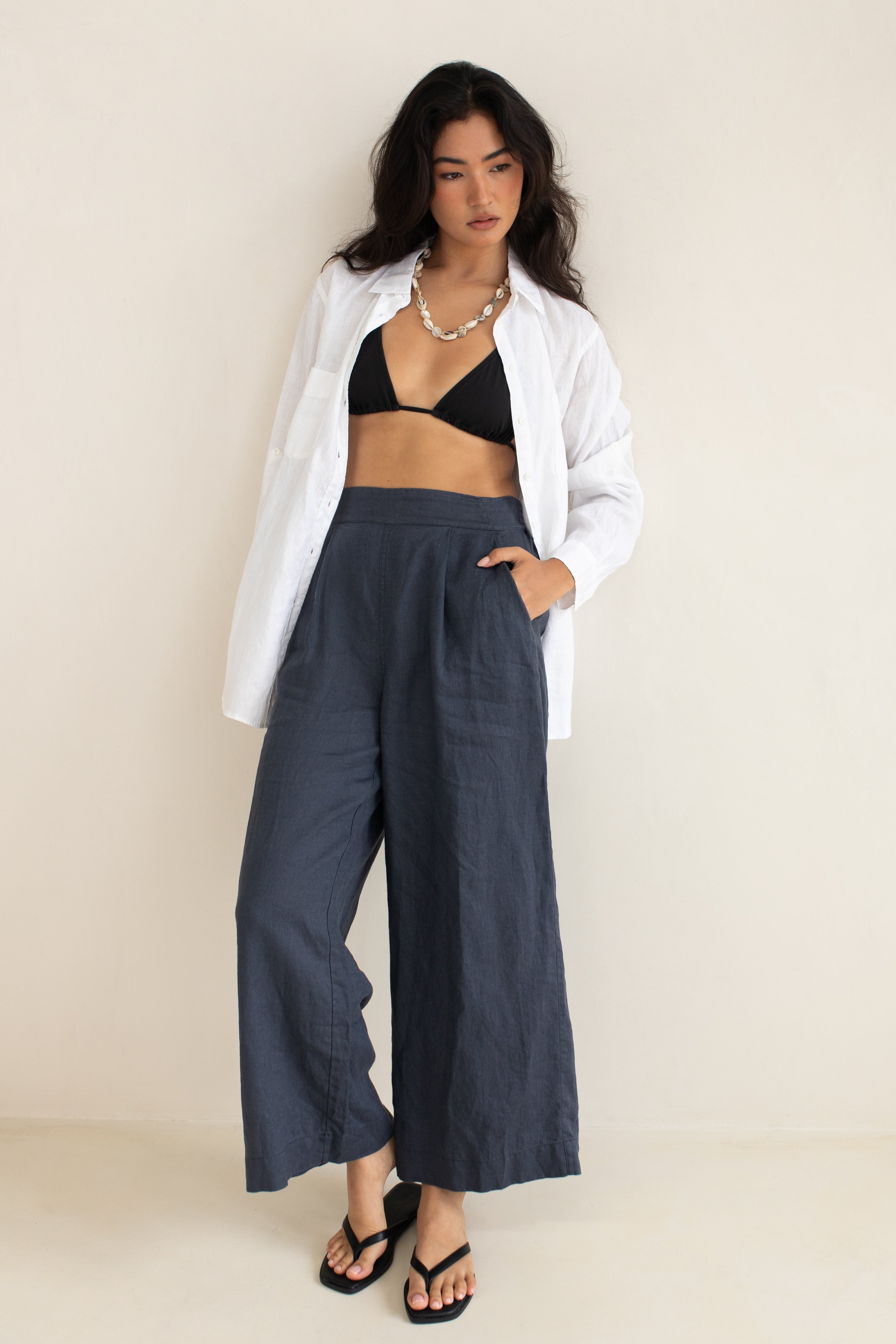 The perfect wide leg Linen pant to pair back with any of our Boyfriend Shirts! Wear the Marcus Pant with our Storm Cloud Boyfriend Linen Shirt for a matching summer set.